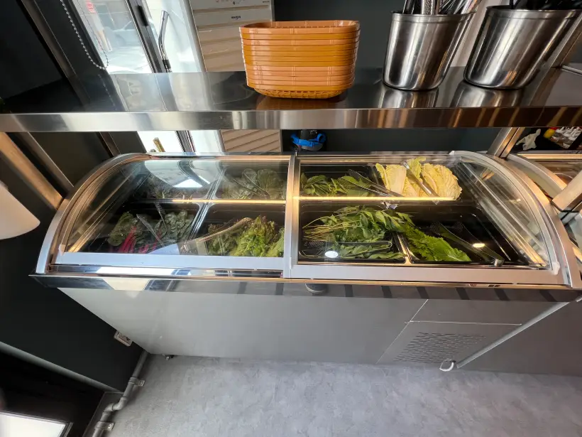 앞쪽에 다양한 쌈종류가 무한으로 제공되어 각자 입맛에 맛게 고를수 있어서 좋았어요. 뒤늦게 사진을 찍느라 많이 부족한데요 후식으로 비냉과 열무국수를 시켰는데 맛이 괜찮았어요